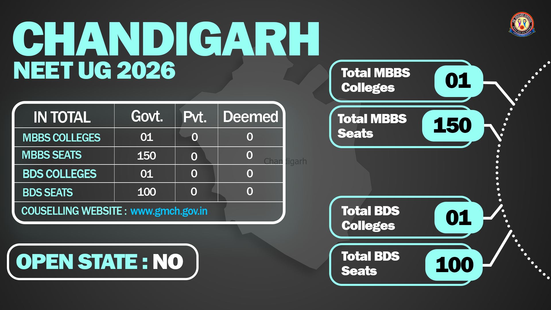 No Domicile Requirement: There is no UT pool for BDS; all seats are open to candidates from across India.